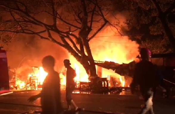 Api dengan mudah menghanguskan belasan kios yang didominasi menjual bahan bakar minyak (BBM) eceran.