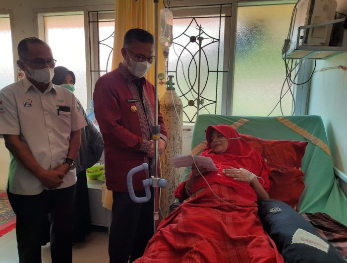 KENDARI, EDISIINDONESIA.com – Wali Kota Kendari, Sulkarnain Kadir mengunjungi sekaligus menyerahkan bantuan kepada salah seorang warga Keluhanan Anggilowu, Nursah (50) yang saat ini terbaring di RSUD Kota Kendari karena mengidap penyakit kanker, Kamis (07/04/2022).