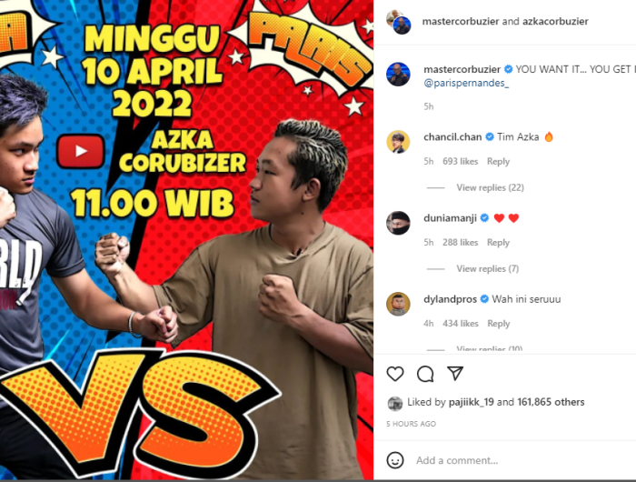 EDISIINDONESIA.com – Usai mengalahkan Vicky Prasetyo dalam duel tanding tinju, Azka Corbuzier mendapat tantangan lawan tanding yang baru.