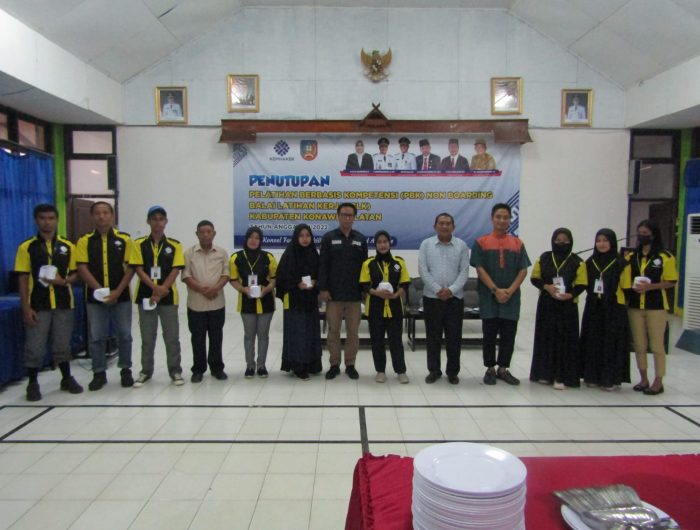 KONSEL, EDISIINDONESIA.com – Kepala Dinas Transmigrasi dan Tenaga Kerja (Transnaker) Kabupaten Konawe Selatan (Konsel), I Gusti Adi Suwantara menutup secara resmi kegiatan Pelatihan Berbasis Kompetensi (PBK) Institusional Non Boarding Tahap I Balai Latihan Kerja Konawe Selatan (BLK Konsel) kemarin, Kamis (22/04/2022).