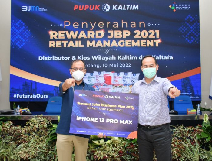 EDISIINDONESIA.com – PT Pupuk Kalimantan Timur (PKT) memberi apresiasi kepada para distributor dan kios berprestasi di wilayah Kalimantan Timur dan Kalimantan Utara, yang dinilai berhasil mencapai target penjualan pupuk non subsidi retail, sesuai program Join Business Plan (JBP) Retail Management periode 2021.