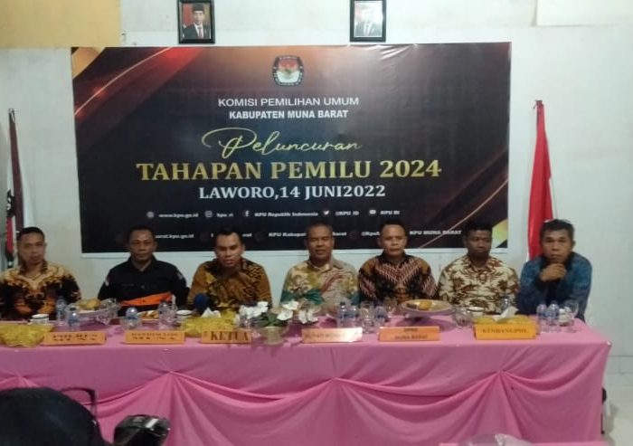 Menurut ketua KPU Muna Barat, Awaluddin Usa Tahapan pemilu sudah di Louncing pada malam hari tadi sesuai dengan UUD nomor 7 tahun 2017 tentang pemilu disitu disampaikan bahwa tahapan pemilu berlangsung tepat pada tanggal 14 juni 2022 adalah tepat 20 bulan tanggal 14 2024 untuk memilih Presiden/Wakil Presiden DPRD,DPD, DPRD Provinsi,dan DPRD Kabupaten.
