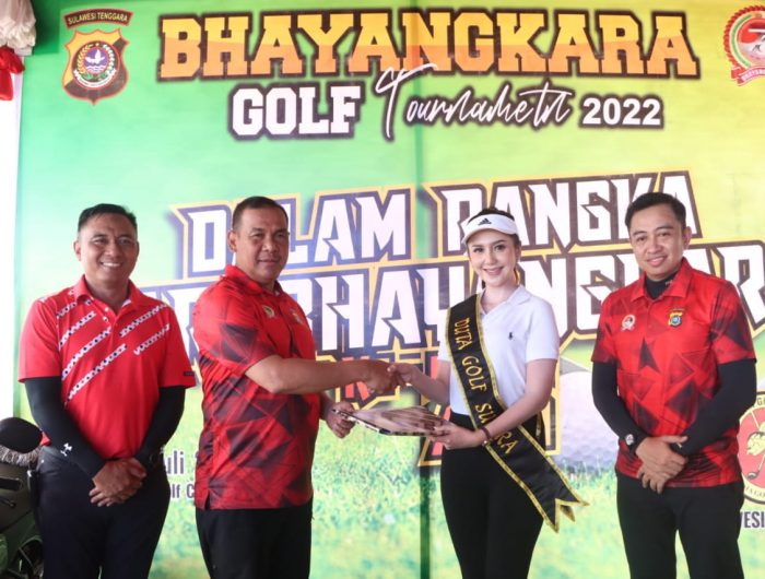 Untuk diketahui, pada kegiatan ini Runner Up 5 Puteri Indonesia 2022 yang mewakili Sultra, Arina Rezkyana Arfa dikukuhkan oleh Kapolda yang didampingi oleh Kapolresta Kendari dan Ketua PGI Sultra sebagai ‘Duta Golf Sultra’.