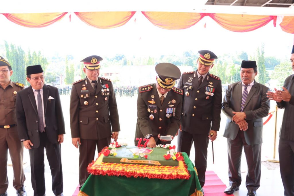 Setelah upacara, dilanjutkan dengan pemotongan tumpeng oleh Dandim 1506/Namlea, dan diserahkan kepada Kapolres Pulau Buru, AKBP Egia Febri Kusumawiatmaja dan didampingi oleh Kapolres Buru Selatan, AKBP M. Agung Gumilar serta Ketua DPRD Kabupaten Buru, M. Rum Soplestuny.