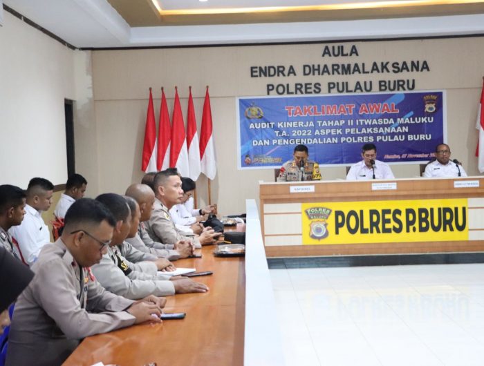 MALUKU, EDISIINDONESIA.id – Kapolres Pulau Buru, AKBP Egia Febri Kusumawiatmaja, didampingi Itwasda Polda Maluku membuka Audit Kinerja Itwasum Polri tahap II tahun anggaran 2022 aspek pelaksanaan dan pengendalian, pada Polres Pulau Buru, Senin (7/11/2022).