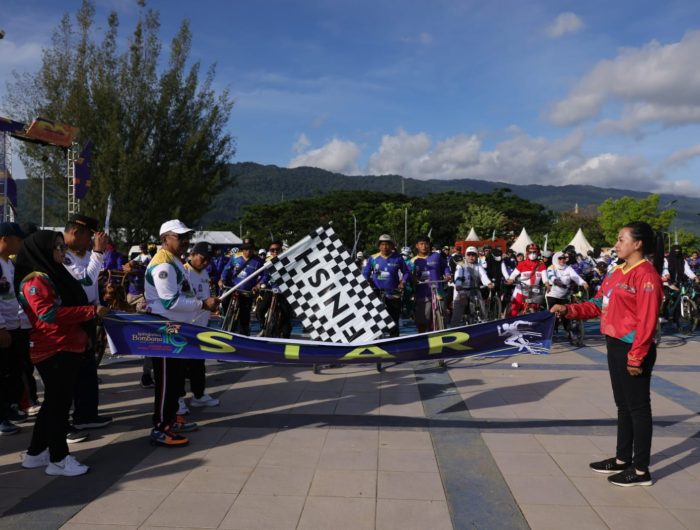 BOMBANA, EDISIINDONESIA.id – Penjabat Bupati Bombana, Burhanuddin melepaskan ratusan peserta komunitas sepeda Santai FUN BIKE, dalam rangka memeriahkan Hari Ulang Tahun (HUT) ke 19 Kabupaten Bombana, di Alun-alun MTQ Kabupaten Bombana, Rabu (21/12/2022).