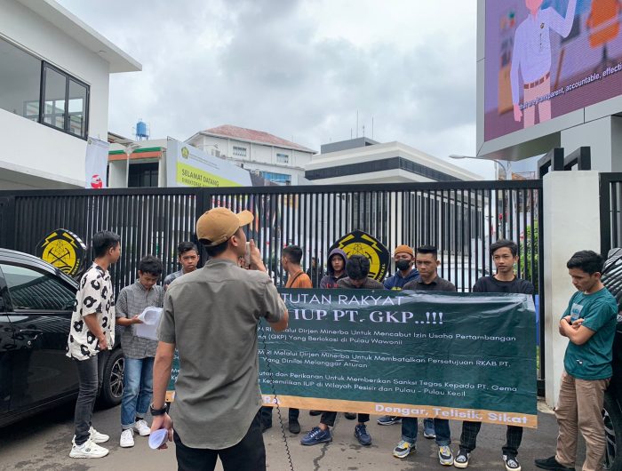 melakukan aksi unjuk rasa Jilid 2 didepan Direktorat Jenderal Mineral dan Batubara (Minerba) terkait penolakan hadirnya anak Perusahaan Harita Group ,PT.Gema Kreasi Perdana ( PT.GKP) di Pulau Wawoni, Kabupaten Konawe Kepulauan, Provinsi Sulawesi tenggara.