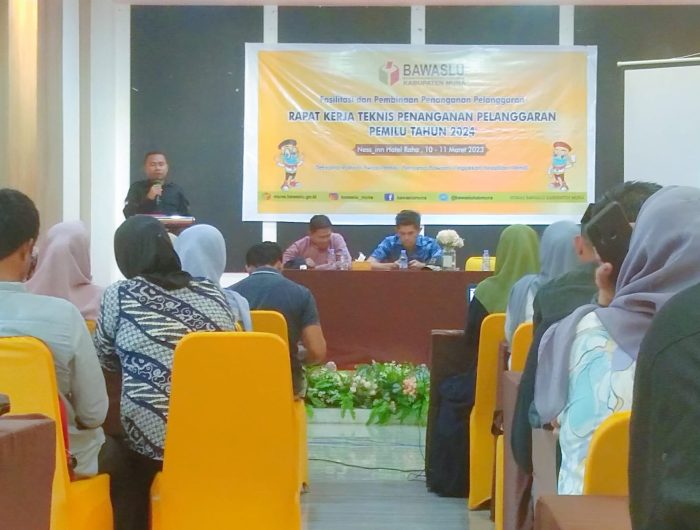 MUNA, EDISIINDONESIA.id – Badan Pengawas Pemilihan Umum (Bawaslu) Kabupaten Muna menggelar Rapat Kerja Teknis (Rakernis) penanganan pelanggaran pada tahapan Pemilu 2024, pada salah satu hotel di Kota Raha, pada Jumat – Sabtu (10-11/3/2023).