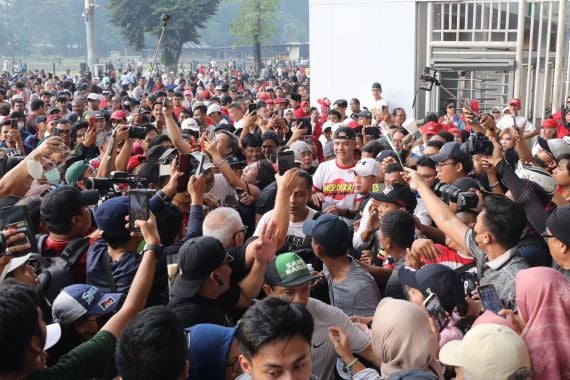 Ribuan anak muda hingga kelompok lanjut usia yang sedang berolahraga langsung mendatangi bakal calon presiden (bacapres) dari PDIP itu di simpang FX Sudirman.
