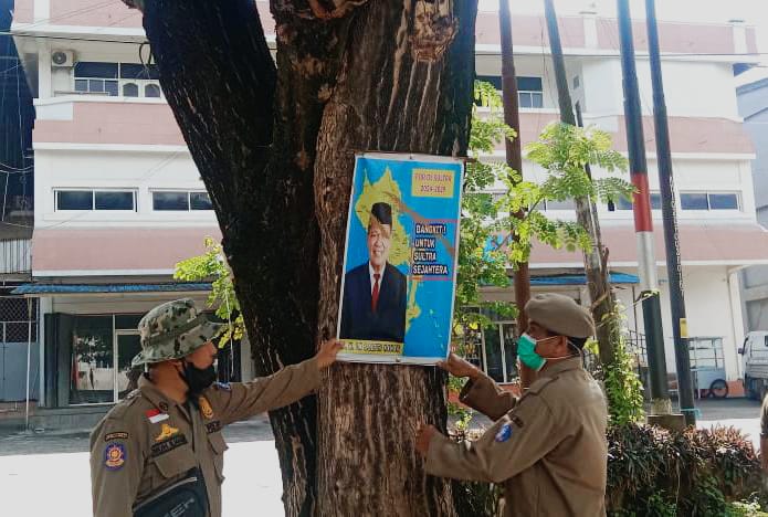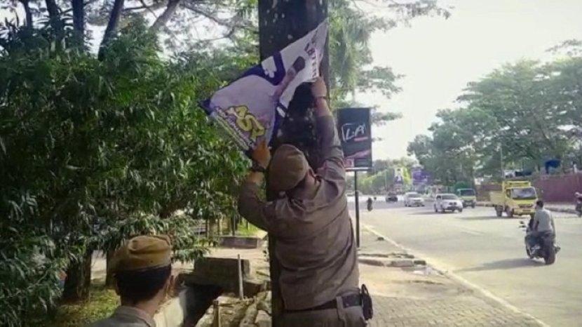 KENDARI, EDISIINDONESIA.id- Satuan Polisi Pamong Praja (Satpol-PP) Kota Kendari, mulai melakukan penertiban Alat Peraga Kampanye (APK) dan reklame yang menempel di pohon-pohon maupun tiang listrik di dalam wilayah Kota Kendari.