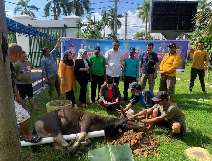 Penyembelihan hewan qurban ini berlangsung di halaman Kantor Kejati Sultra, Ahad (2/6/23).