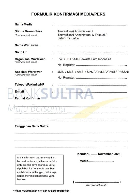 Sehingga, untuk melayani wartawan, Bank Sultra hanya perlu melihat kartu pers sebagai informasi tanda pengenal pribadi dan informasi media platformnya.