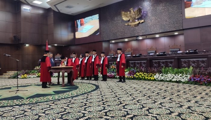 Pelantikan tersebut diselenggarakan, di Ruang Sidang Utama Gedung MK, Jalan Medan Merdeka Barat, Jakarta Pusat, Senin (13/11/2023).
