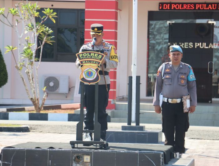 Pimpinan Apel Kapolres Pulau Buru AKBP Nur Rahman, Kemudian, Komandan Apel Ps. Kasat Binmas Polres Pulau Buru IPTU Bahtiar Teppo, sedangkan perwira apel Kabag Ops Polres Pulau Buru AKP Uspril. W. Futwembun.