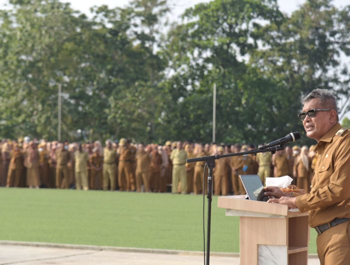 Apel gabungan ini diikuti ribuan Aparatur Sipil Negera (ASN) lingkup Kota Kendari, bertempat di lapangan upacara Kantor Balai Kota Kendari.
