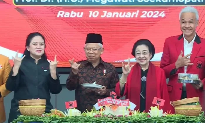 EDISIINDONESIA.id – Wakil Presiden Ma’ruf Amin menghadiri perayaan HUT PDIP ke-51 yang berlangsung di Sekolah Partai PDIP di daerah Lenteng Agung, Jakarta Selatan, Rabu (10/1/2024).
