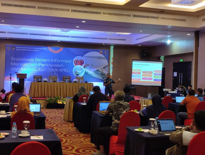 KENDARI, EDISIINDONESIA.id – Kantor Kesyahbandaran dan Otoritas Pelabuhan (KSOP) Kelas II Kendari melaksanakan sosialisasi sistem informasi manajemen perkapalan dan kepelabuhanan (Simkapel), di salah satu hotel di Kendari, Rabu (17/1/2024).
