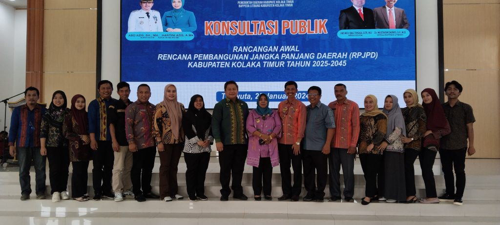 Pemerintah Daerah (Pemda) Kabupaten Kolaka Timur (Koltim) melalui Badan Perencanaan Pembangunan Daerah (Bappeda) menggelar Konsultasi Publik terkait rancangan awal rencana pembangunan jangka panjang Daerah (RPJPD) Kabupaten Kolaka Timur Tahun 2025-2045, di Aula Rujab Bupati Koltim, Kamis (25/1/2024).