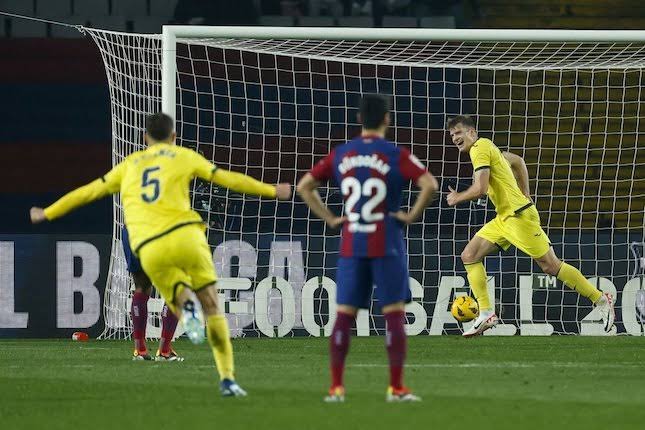 Barca yang baru saja tersingkir di Copa del Rey langsung tertinggal 0-2 setelah dijebol Gerard Moreno di menit ke-41 dan Ilias Akhomach pada menit ke-54.