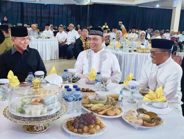 KENDARI, EDISIINDONESIA.id – Ketua DPW PPP Sulawesi Tenggara (Sultra), Andi Sumangerukka dan Ketua DPD Gerindra Sultra, Andi Ady Aksar, menghadiri buka puasa bersama yang digelar paguyuban Kerukunan Keluarga Bone di Gedung Grand Awani, Sekretariat Pemenangan Prabowo Gibran, Jumat (5/4/2024).