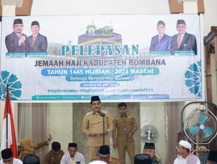 BOMBANA, EDISIINDONESIA.id – Penjabat Bupati Bombana, Edy Suharmanto didampingi Penjabat Ketua TP PKK Kabupaten Bombana, Aeni Mutmainnah secara resmi melakukan pelepasan jemaah Haji Kabupaten Bombana tahun 1445H/2024M, Selasa (4/6/2024)