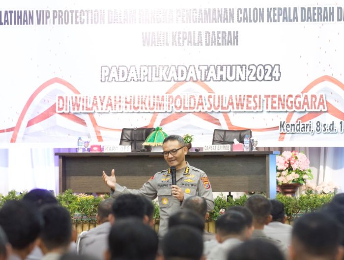 EDISIINDONESIA.id – Biro Ops Polda Sulawesi Tenggara (Sultra) menggelar latihan VIP Protection dalam rangka pengamanan Calon Kepala Daerah untuk Pemilihan Kepala Daerah (Pilkada) Tahun 2024 di wilayah hukum Polda Sultra, Senin (8/7/2024).