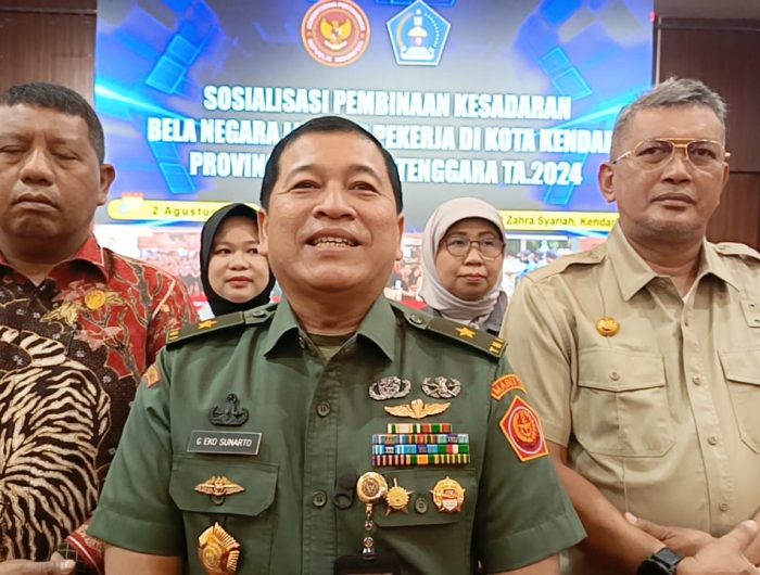 KENDARI, EDISIINDONESIA.id – Direktur Bela Negara Brigjen TNI G. Eko Sunarto membuka secara resmi sosialisasi bela negara yang dihadiri oleh pekerja se-Kota Kendari, Provinsi Sulawesi Tenggara (Sultra) yang ditandai dengan pemukulan gong disalah satu hotel di Kota Kendari, Jumat (2/8/2024).
