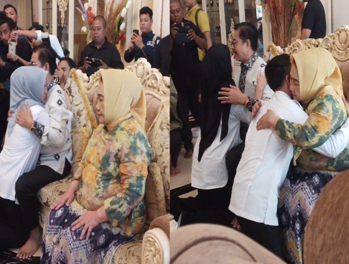Pelepasan tersebut diwarnai momen haru ketika Giona dan Radhan sungkeman kepada orang tuanya. Kedua calon kepala daerah Kota Kendari dan Konsel ini meneteskan air mata sembari mencium kaki orang tua mereka.