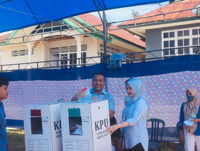 Sementara itu, pangan AJp, Andi Sulolipu salurkan hak pilihnya di TPS 4 Kelurahan Wundudopi, Kecamatan Baruga.