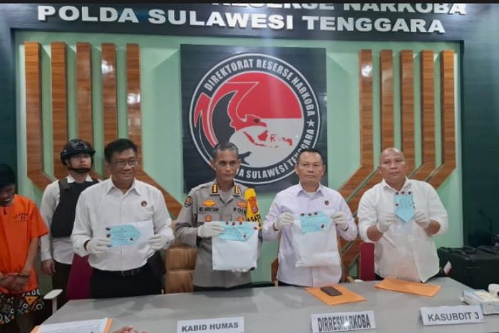 Hal ini diungkapkan Direktur Reserse Narkoba Polda Sultra, Kombes Pol. Bambang Sukmo Wibowo, didampingi Kabid Humas Kombes Pol. Iis Kristian, dalam konferensi pers Rabu (26/3/2025).