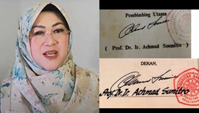 “Dan bukan Prof. Dr. Ir. Achmad Soemitro, seperti tertera pada potongan (foto) dokumen palsu di atas (potongan foto ijazah beliau (Aida, yang diposting Rismon),” sambungnya.