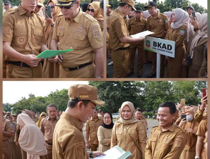 KONUT, EDISIINDONESIA.id- Bupati Konawe Utara, H. Ikbar, SH., M.H., melantik empat pejabat pelaksana tugas (Plt) usai memimpin apel gabungan perdana pada Selasa, (8/4/ 2025)