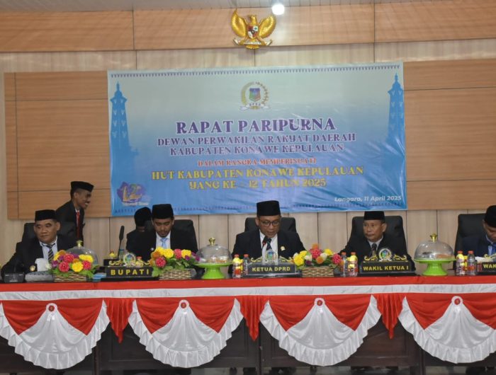 KONKEP, EDISIINDONESIA.id- Dewan Perwakilan Rakyat Daerah (DPRD) Konawe Kepulauan (Konkep) menggelar rapat paripurna istimewa dalam rangka menyambut Hari Ulang Tahun (HUT) Konkep Ke-12 tahun. Di Aula Kantor DPRD Konkep, Jum’at, (11/4/2025).