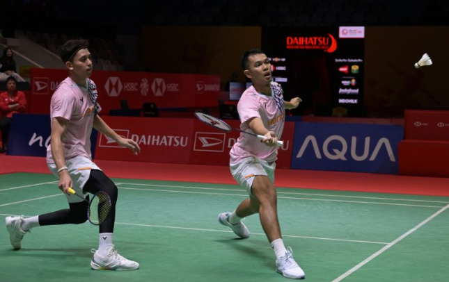 Poin pertama di sumbangkan pasangan ganda putra, Fajar Alfian/Muhammad Rian Arianto yang menang dua game langsung dari Rory Easton/Alex Green, 21-11 dan 21-11.