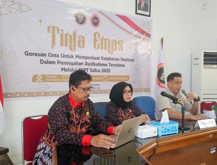 Badan Nasional Penanggulangan Terorisme (BNPT) Republik Indonesia melalui Forum Koordinasi Pencegahan Terorisme (FKPT) Sulawesi Tenggara (Sultra) menyelenggarakan pelatihan bertajuk “Tinta Emas: Tulisan Cinta Menyongsong Indonesia Emas” secara luring dan daring pada Rabu (21/5/2025).