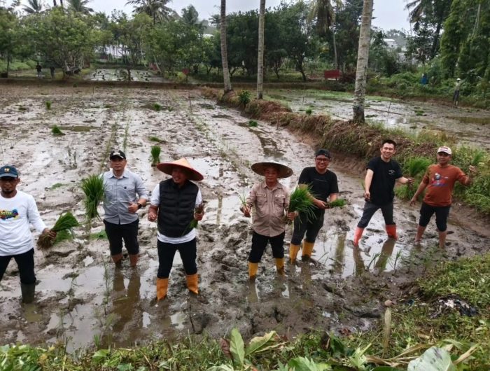 Jajaran Pemkot melakukan penanaman padi varietas Inpari 2 di atas lahan seluas 2 hektare milik warga bernama Fakhriman Liambo, yang berada di Jalan R. Suprapto Lorong Pelangi, RT 18 RW 06, Kelurahan Tobuuha, Kecamatan Puuwatu, Jum’at (13/6/2025).