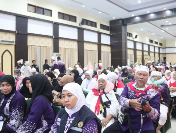 MAKASSAR, EDISIINDONESIA.id – Kakanwil Kemenag Provinsi Sulawesi Tenggara (Sultra) Muhamad Saleh selaku Ketua PPIH Sultra menyambut kedatangan Jemaah Haji Sultra yang tergabung dalam Kloter 33-UPG asal Kabupaten Kolaka, di Aula Penerimaan Debarkasi Asrama Haji Sudiang Makassar, Sabtu (5/7/2025) dini hari.