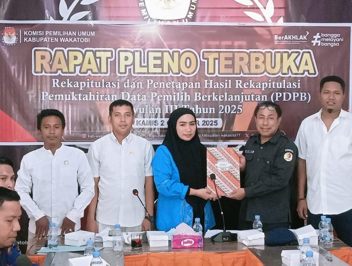 WAKATOBI, EDISIINDONESIA.id – Komisi Pemilihan Umum (KPU) Kabupaten Wakatobi menetapkan sebanyak 82.431 pemilih dalam Rapat Pleno Terbuka Rekapitulasi Pemutakhiran Data Pemilih Berkelanjutan (PDPB) Triwulan III Tahun 2025 yang digelar di Kantor KPU Wakatobi, Kamis (2/10/2025).