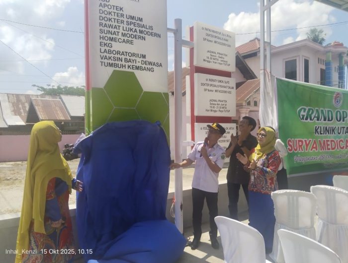 Peresmian dilakukan secara simbolis oleh Kadis Dinkes Yones, didampingi Dr. Agus Lahida dan Direktur Klinik Surya Medical Center, Dr. Rafika Mansyur.
