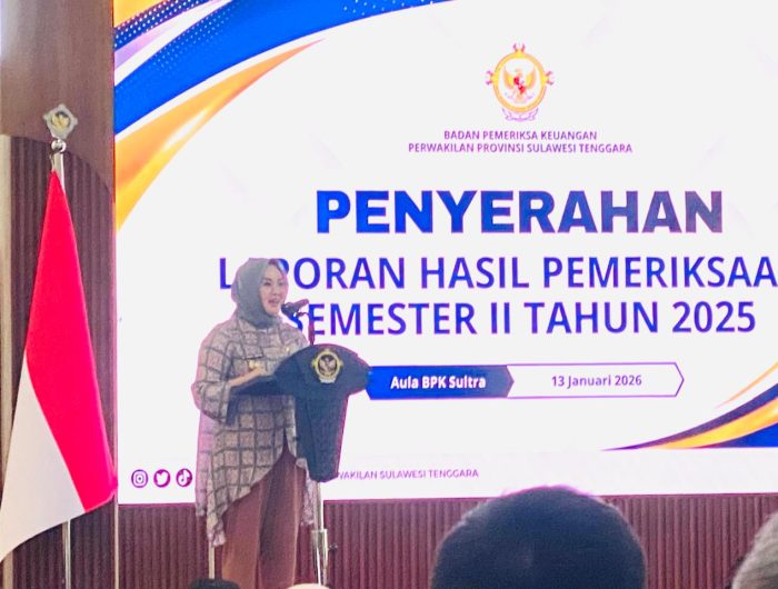 KENDARI, EDISIINDONESIA.id – Wali Kota Kendari dr. Hj. Siska Karina Imran, SKM., menghadiri acara penyerahan Laporan Hasil Pemeriksaan (LHP) Semester II Tahun 2025 yang diselenggarakan oleh Badan Pemeriksa Keuangan (BPK) Republik Indonesia Perwakilan Sulawesi Tenggara di kantornya, Selasa (13/1/2025).